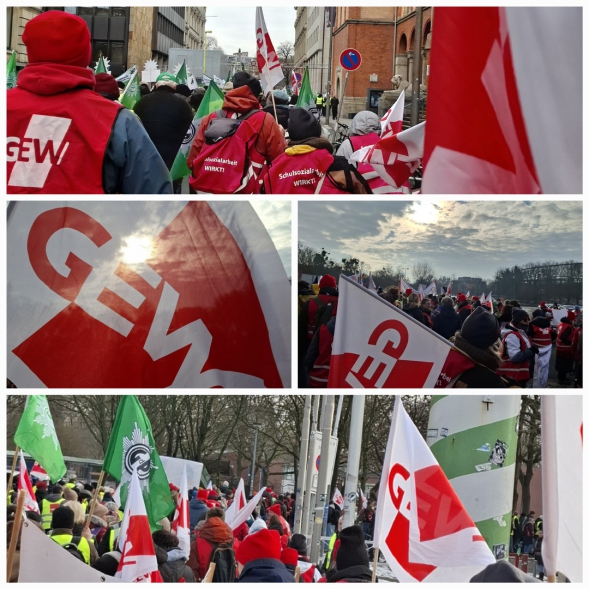 Einen Tag vor der dritten Verhandlungsrunde zum Tarifvertrag der Länder (TV-L) haben in Hannover rund 3.500 Streikende ein starkes Zeichen gesetzt. Unter den Demonstrierenden waren hunderte tarifbeschäftigte GEW-Mitglieder des Bildungswesens, die von verbeamteten Kolleg*innen unterstützt wurden. Die GEW Niedersachsen hatte zusammen mit ver.di, der GdP und der IG BAU zum Streik aufgerufen, um den Druck auf die Arbeitgeberseite zu erhöhen. Mitglieder des Kreisverbands Göttingen und Northeim sind gemeinsam um 8 Uhr mit einem Reisebus in Richtung Hannover gefahren.