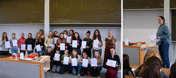 Die Projekte wurden am Sonntag, den 12. April ab 11:15 Uhr im Rahmen einer Abschlussveranstaltung im Mathematischen Institut der Universität Göttingen durch die Schülerinnen vorgestellt. Die